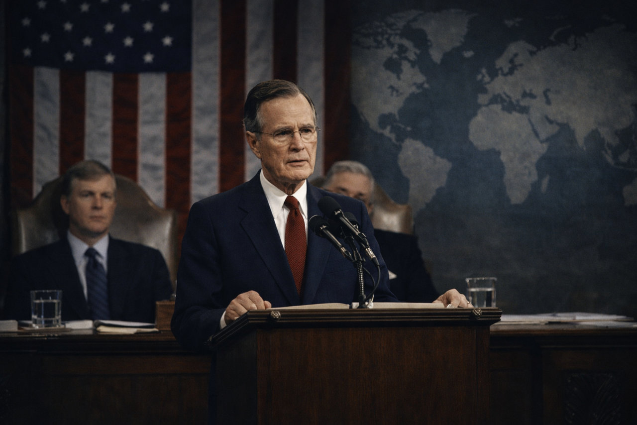 „Neue Weltordnung“ ist ein geopolitischer Ordnungsbegriff. Er stammt nicht aus der Verschwörungsliteratur, sondern aus der Sprache offizieller Machtpolitik. Prominent wurde er, als US-Präsident George H. W. Bush ihn am 11. September 1990 in seiner Rede vor einer gemeinsamen Sitzung des US-Kongresses verwendete. Mehr lesen